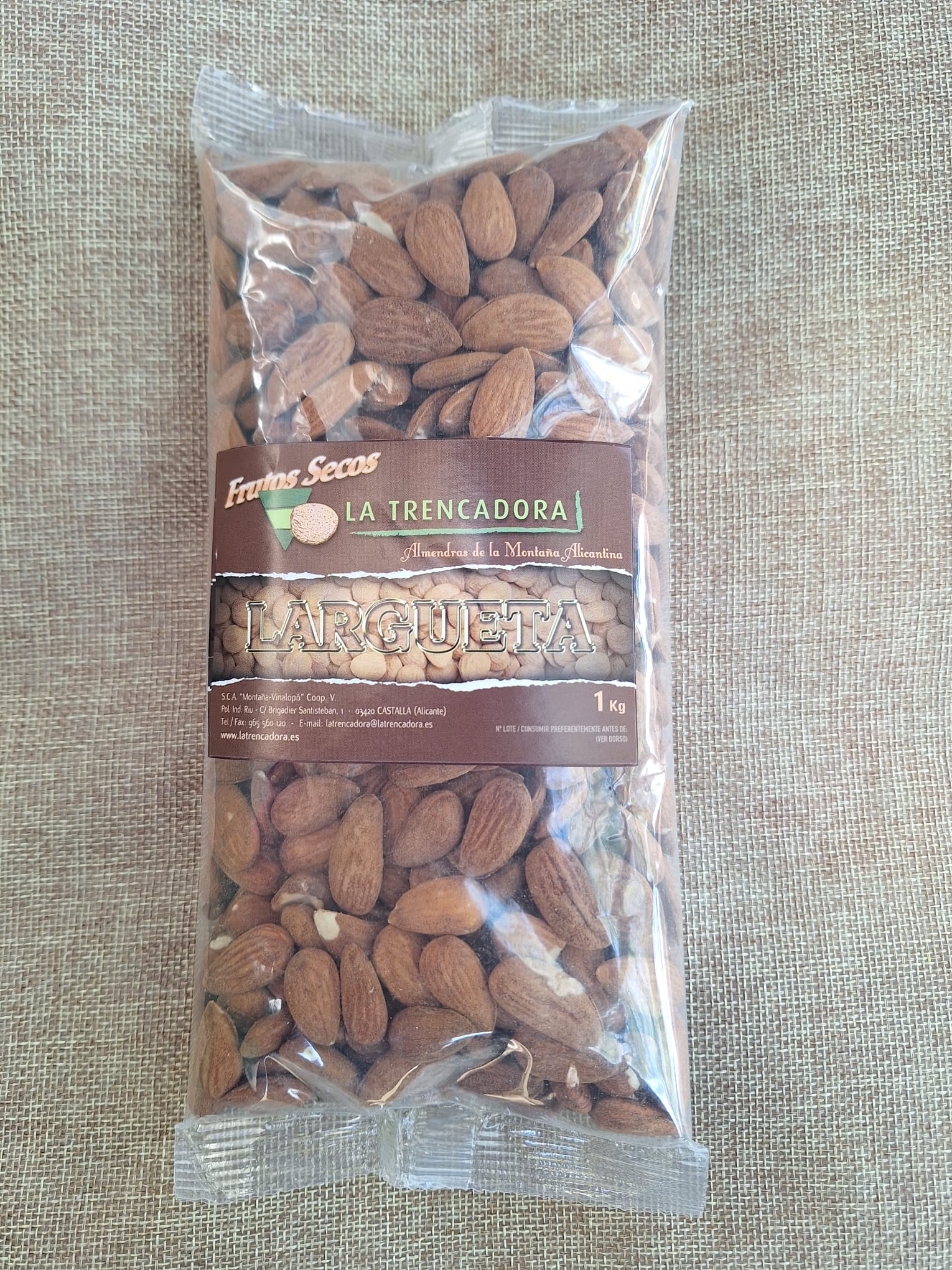 Almendra largueta natural, que destaca por su forma afilada, es un producto perfecto para su consumo como aperitivo bien sea frito, tostado o crudo. Su especial sabor hace que esta variedad sea ideal para elaborar diversos tipos de recetas y salsas.